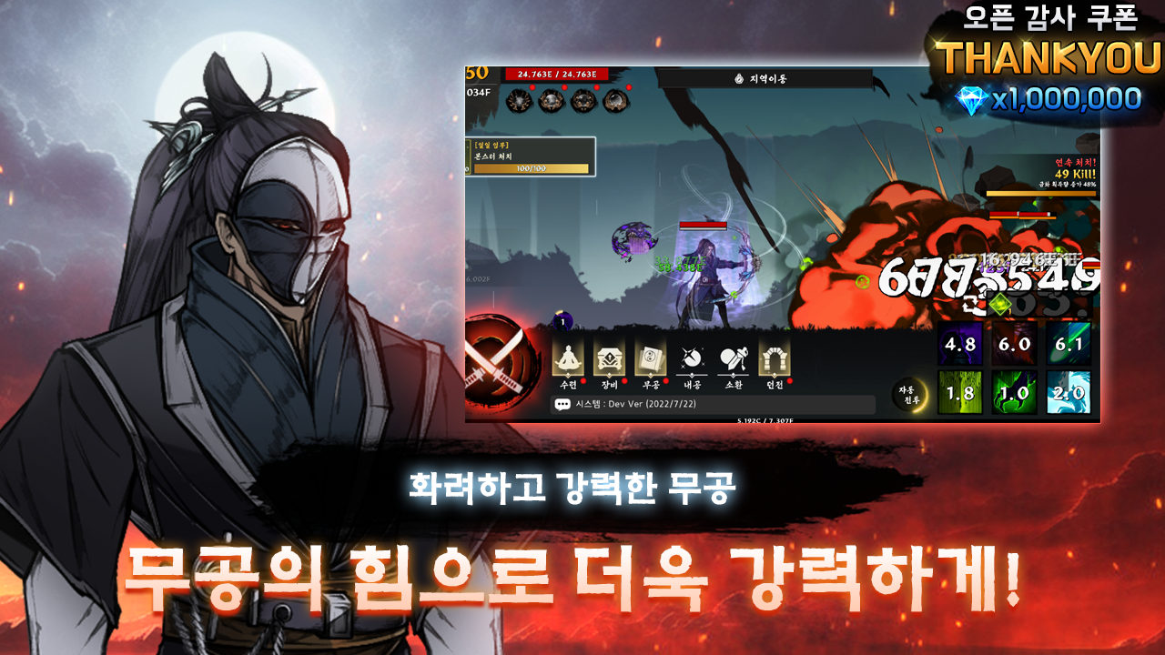 Loại bỏ những tên cướp trong khu cắm trại để lấy hàng hóa và thách thức những tên trùm mạnh hơn! Đối phó với những bậc thầy bị lãng quên của Moorim cũ! Trải nghiệm một cuộc chiến ngày càng mạnh mẽ hơn với nhiều sự kiện và cập nhật liên tục diễn ra!
