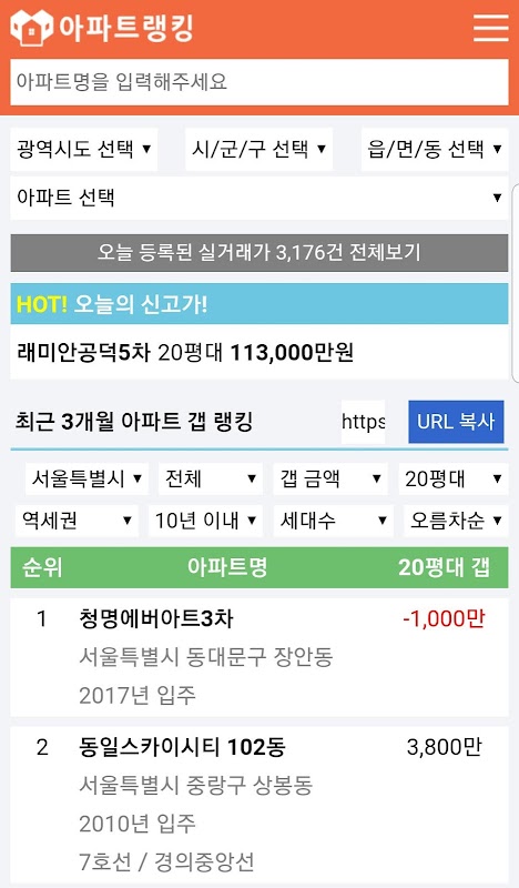 아파트랭킹 - 국토부 실거래가 조회 아파트 순위 33
