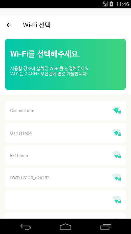 - 사용할 장소에 설치된 Wi-Fi를 연결해주세요.