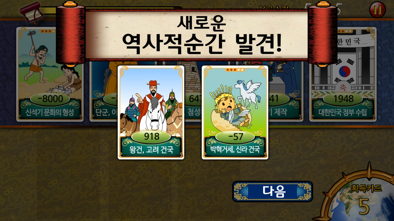 모든 카드를 오픈하여 랜덤 하게 주어집니다. 역사에 자신 있는 사람은 무한한 역사 순서에 도전하실 수 있습니다.