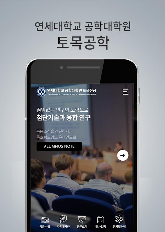 Trường đại học kỹ thuật Yonsei Đây là một cuốn sổ tay di động dành cho cựu sinh viên ngành kỹ thuật dân dụng. Chỉ có cựu sinh viên và giảng viên có sẵn.