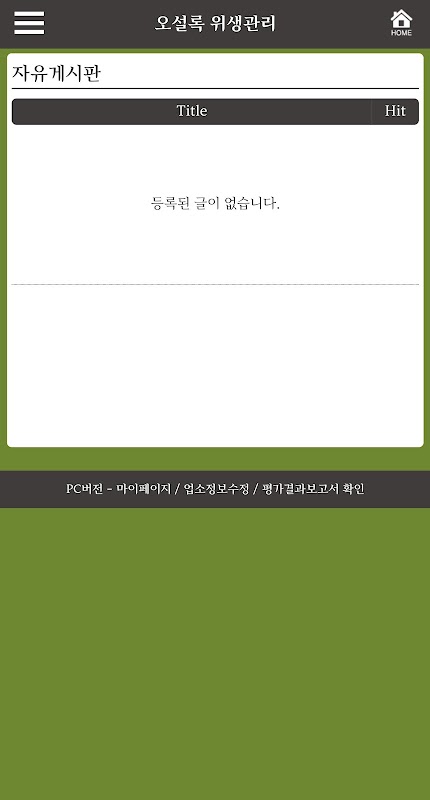 ▸ phạm vi cả nước sau mỗi lần chôn cất đánh giá các điều kiện vệ sinh của các cửa hàng riêng của họ, trong đó để báo cáo tự đánh giá trong hệ thống trụ sở chính có thể xác định các mục đánh giá của các cửa hàng, điểm số mục cụ thể, thiếu thông tin, đánh giá, xếp hạng và chương trình quản lý việc thẩm định chương trình vệ sinh của O'Sulloc vệ sinh an toàn bằng cách ngăn chặn ngộ độc thực phẩm và nâng cao tiêu chuẩn vệ sinh dựa trên tự đánh giá.