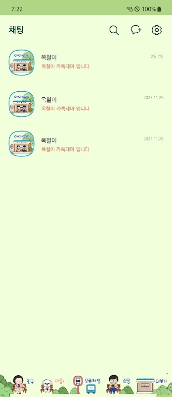 구글의 OS정책에 따라 앱 실행 시 기존에 노출되었던 옥철이 메인화면은