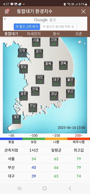 Ứng dụng này sử dụng dữ liệu công khai từ Cục Khí tượng Hàn Quốc, Tổng công ty Môi trường Hàn Quốc, v.v. và không phải là ứng dụng chính thức của chính phủ và không có mối quan hệ liên kết.