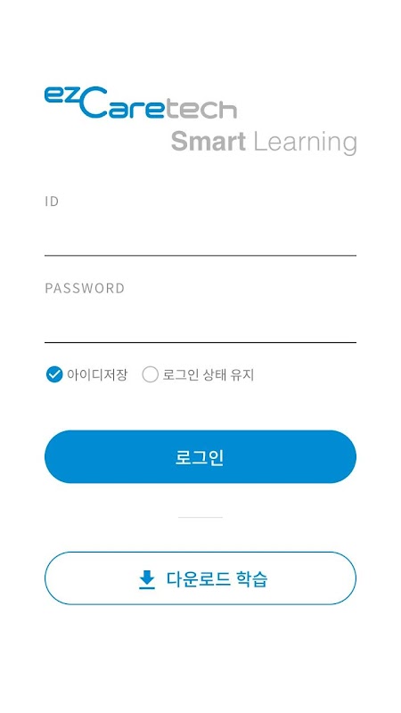 PC환경의 이지케어텍(주) 사이버연수원(http://ezcaretech.hunet.co.kr)의 아이디와 비밀번호로 로그인 가능하며, 주요 서비스를 본 모바일 앱에서도 사용하실 수 있습니다.