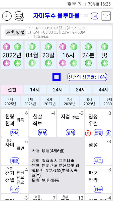 북두칠성의 좌전을 적용하는 방식과 일반적인 달의 변화를 포착하여 적용하는 방식 2가지를 갖고 있는 보급형 자미두수 앱