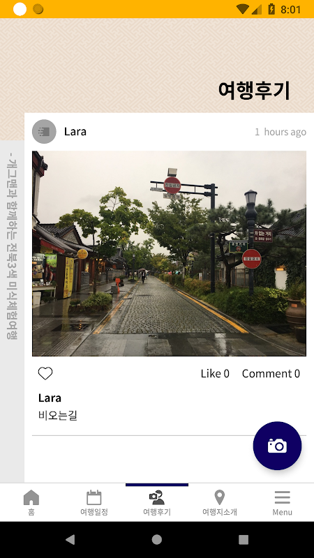 카메라 : 여행후기, 타임라인, 프로필에 사진 업로드시 사진 촬영