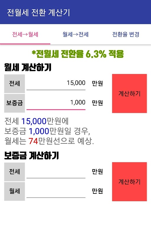 - 전세금 계산, 월세 계산, 보증금 계산 분리