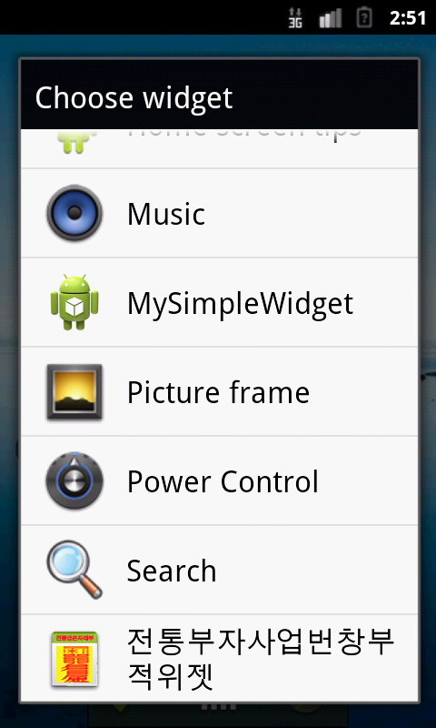 폰에서 앱 실행없이 폰 바탕화면에서 바로 볼 수 있는 위젯은 폰의 화면을 계속 누르고 있으면 뜨는 메뉴에서 위젯 선택한 후 전통 부적 선택하시면 됩니다. 바탕화면에 다른 아이콘들이 없이 충분한 공간이 있어야 나타납니다.
