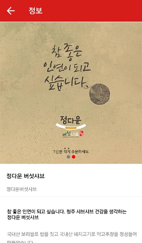 자연과 가까운 음식 귀하고 귀한 버섯샤브를 합리적인 가격에 드실수 있습니다.