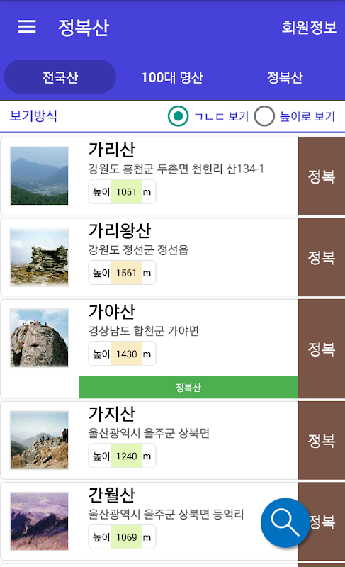 100대 명산을 정복하고 체크해보세요. 추가되었습니다.