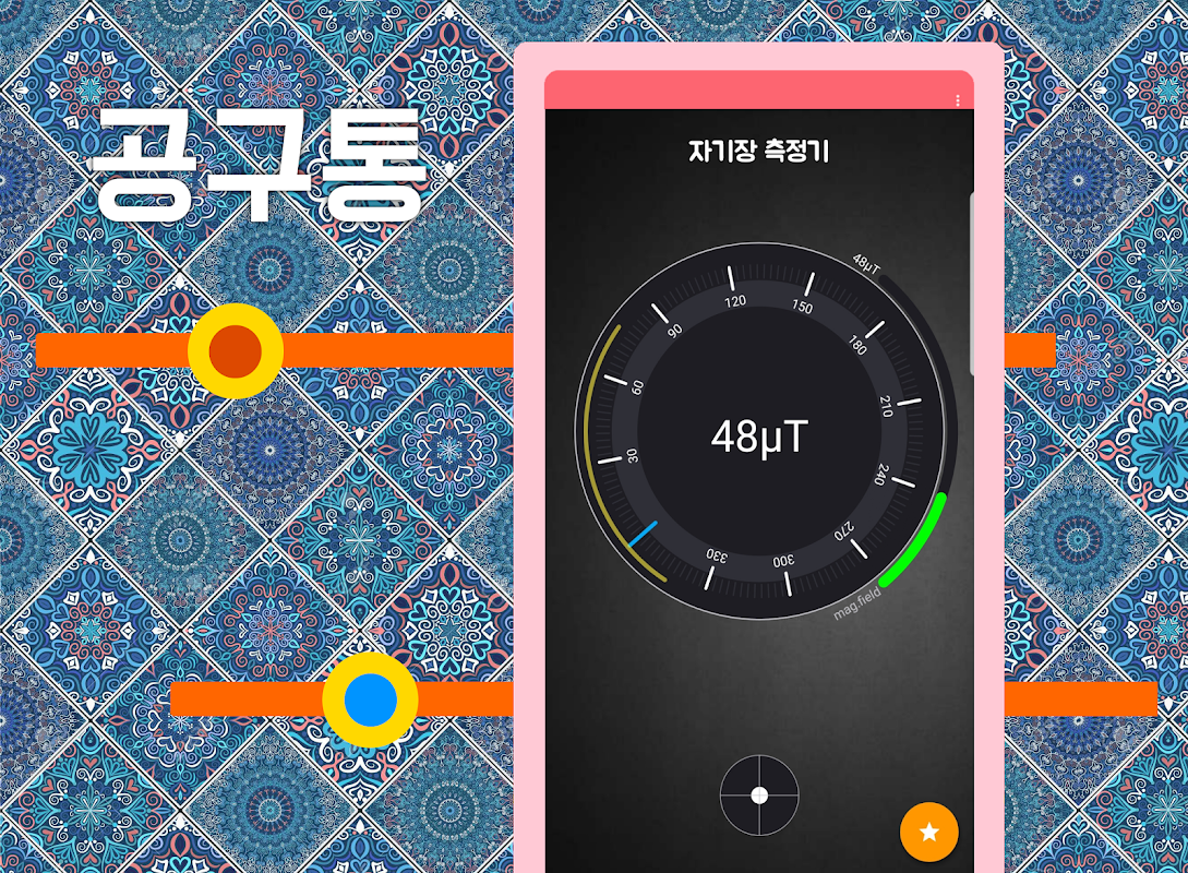 - 폰에 내장된 자기장 센서를 이용하여 자기장을 측정합니다.