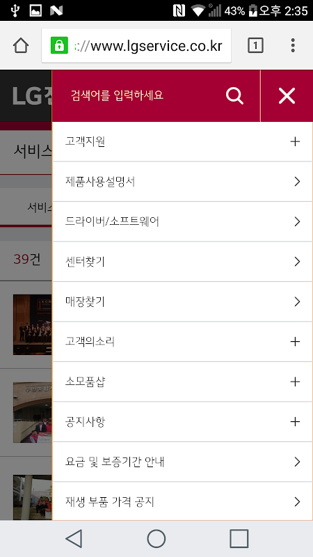 - 해당 앱은 LG전자 홈페이지의 고객지원 메뉴로 연결하는 서비스입니다.
