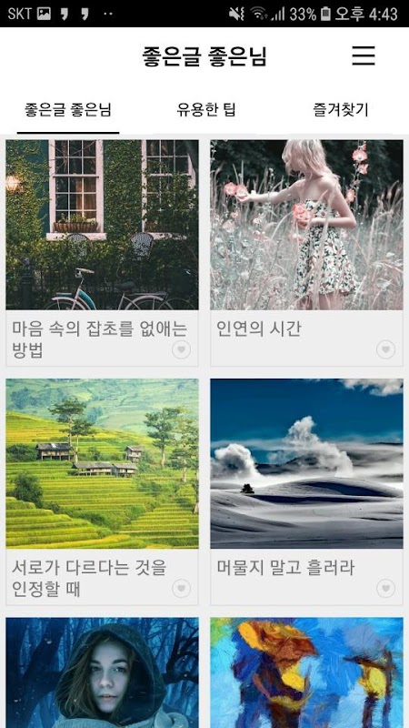 좋은글, 감동글, 명언 등 다양한 글을 모아서 여러분에게 드리는 공간입니다. 따뜻한 감동, 생각할 여유, 마음에 위로와 격려가 되는 글을 보여드립니다.