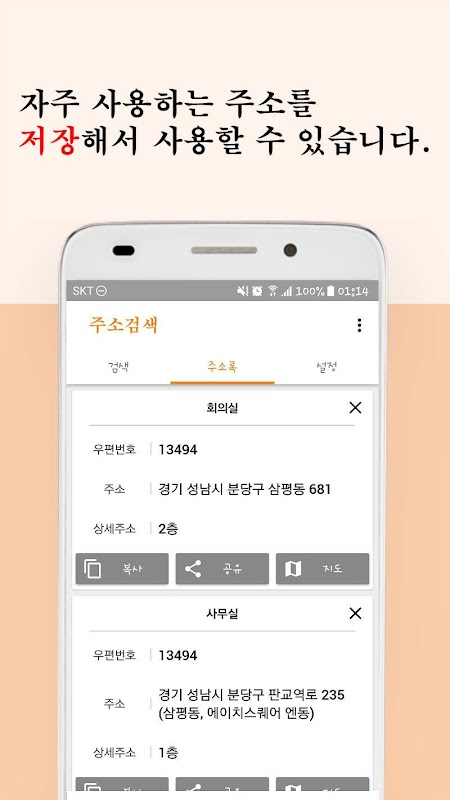 티맵, 카카오내비연동, 주소찾기를 도와주는 앱입니다. :) 새주소, 구주소, 영문주소, 우편번호, 도로명 주소, 지번 주소, 주소찾기