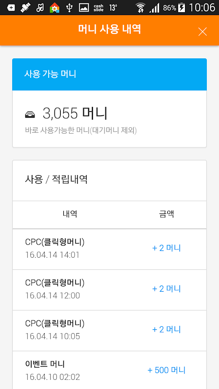 2. 서비스에 따른 일정캐시 적립