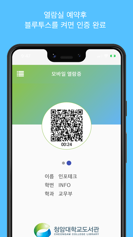 Hệ thống đặt chỗ ngồi di động của thư viện Đại học Cheongam.