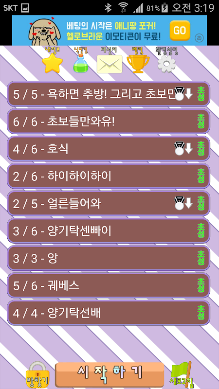 나타나는 초성과 힌트를 보고 정답을 채팅창에 적어서 맞히는 게임!!