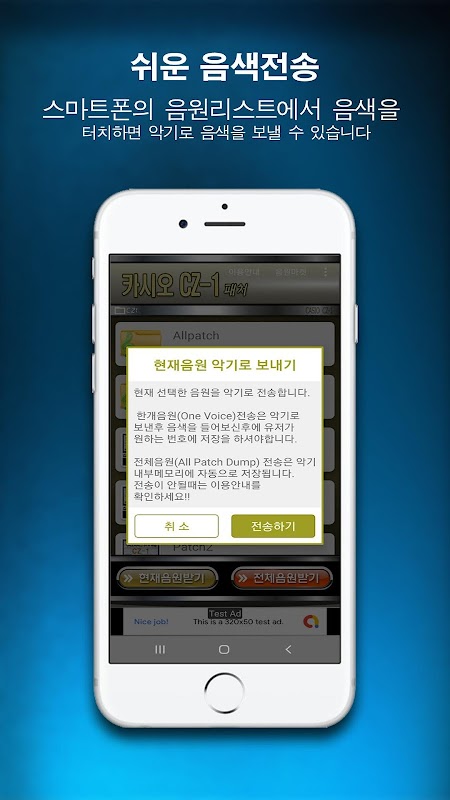 스마트폰으로 악기음원을 저장하고 다시 악기로 보내는 신디사이저전용