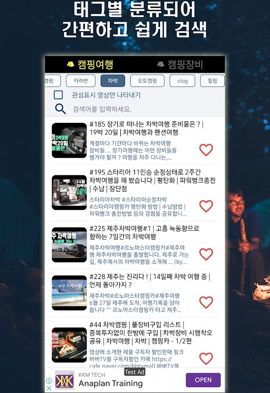캠핑여행, 차박여행, 카라반여행 등 각종 캠핑여행에 대한 영상과
