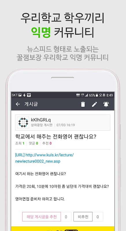 - 내 맘대로 정하는 닉네임과 함께 즐기는 우리학교 익명 커뮤니티