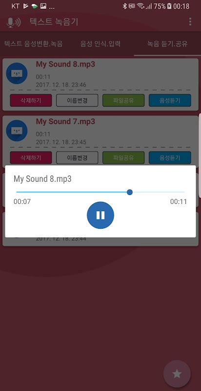 - 듣기.공유 탭 내 녹음파일 반복재생 기능 지원