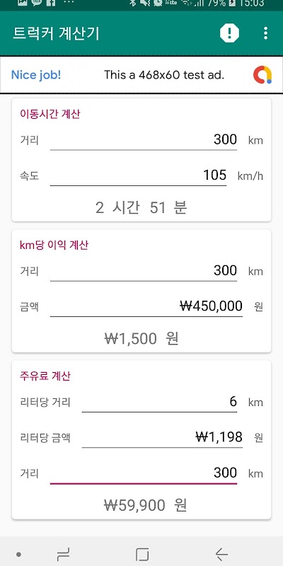 주유료 계산의 리터당 거리가 소숫점을 지원합니다