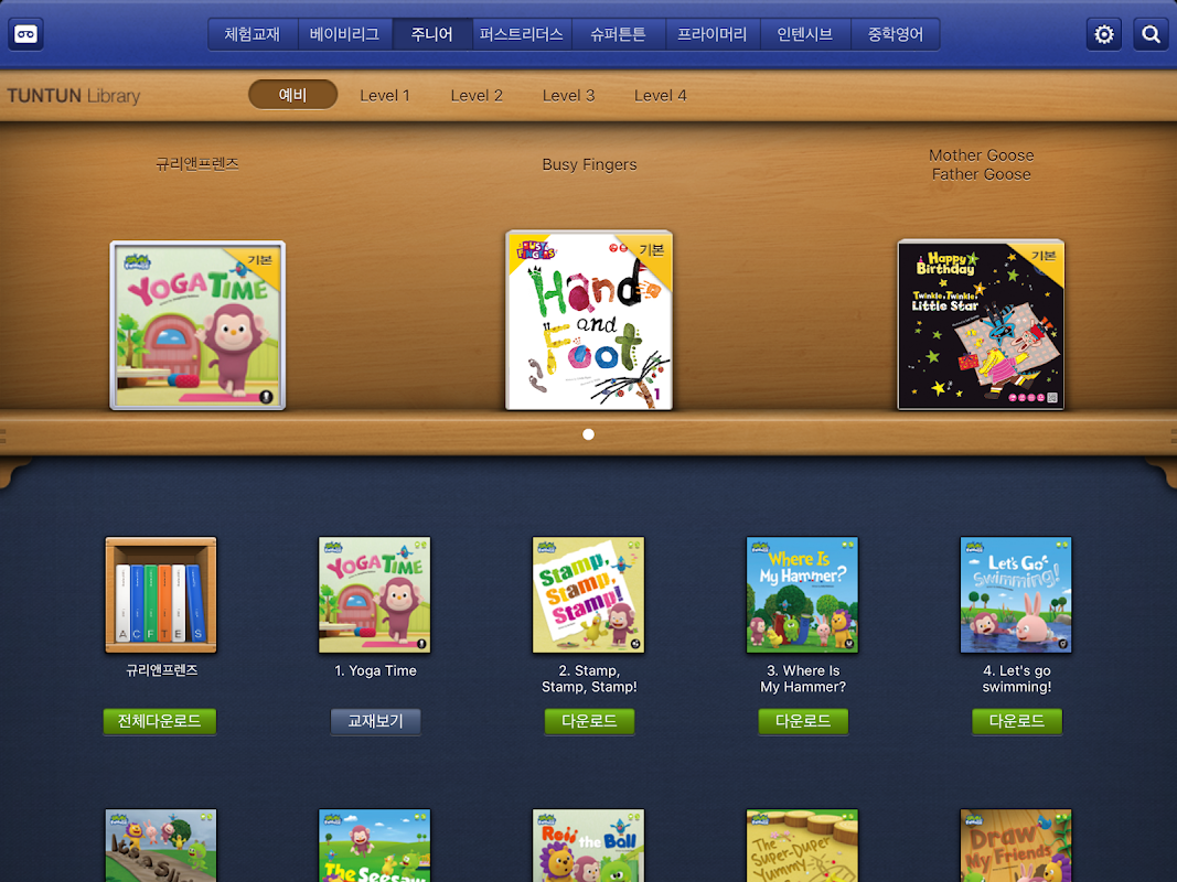 튼튼라이브러리는 튼튼영어의 모든 배움과정의 교재, 영상, 음원 등을
