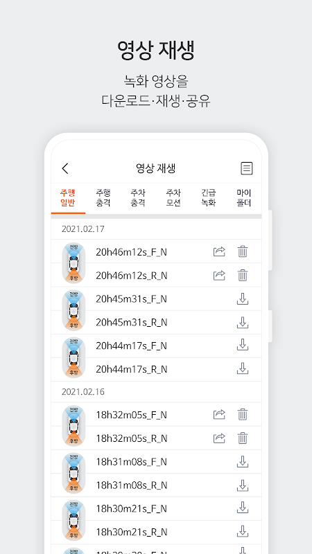 Bạn có thể kiểm tra video được quay ở chế độ ghi lái xe và đỗ xe.