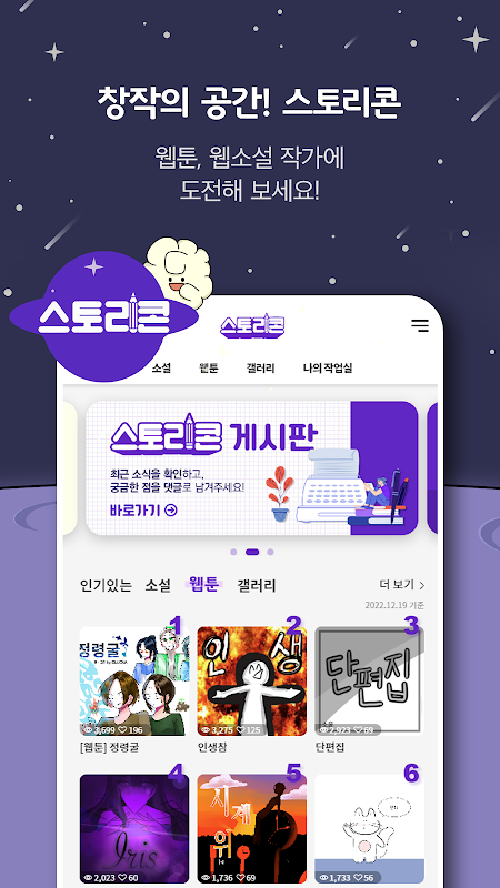 -Story Con: Novel (tiểu thuyết web), webtoon, gallery (hình ảnh)
