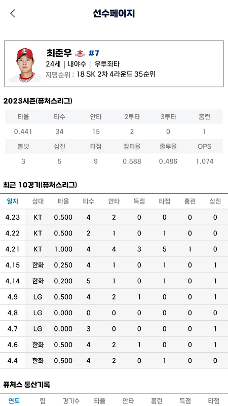 KBO trong ứng dụng chính thức Futures League, nó chứa tất cả các KBO Futures League.