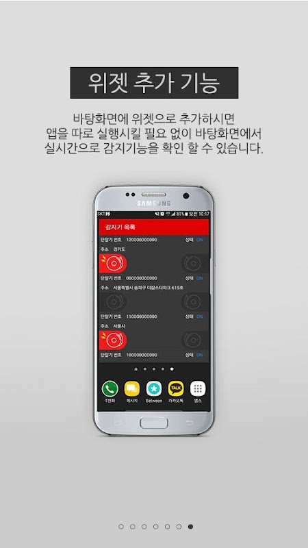 - 단말기가 설치된 건물이라면 스마트폰으로 언제,어디서든 원격으로 감시가 가능합니다.