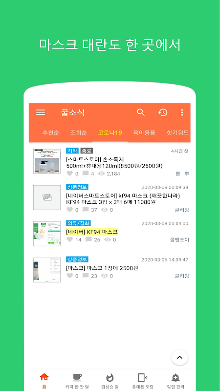 핫딜 알리미 - 꿀소식 - 코로나19 안전 마스크 핫딜도 빠르게 캐치하세요 1.9.4