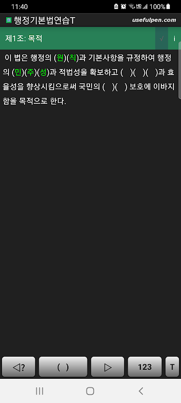 - 조문의 주요 키워드를 순차적으로 ‘숨김/표시’ 하여 암기효과 향상