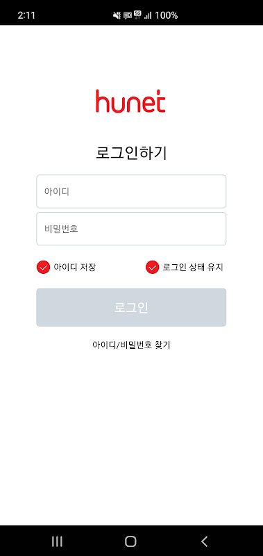 Bạn có thể đăng nhập bằng ID và mật khẩu của Trung tâm đào tạo Hunet SMART trong môi trường PC và bạn cũng có thể sử dụng các dịch vụ chính trên ứng dụng di động này.
