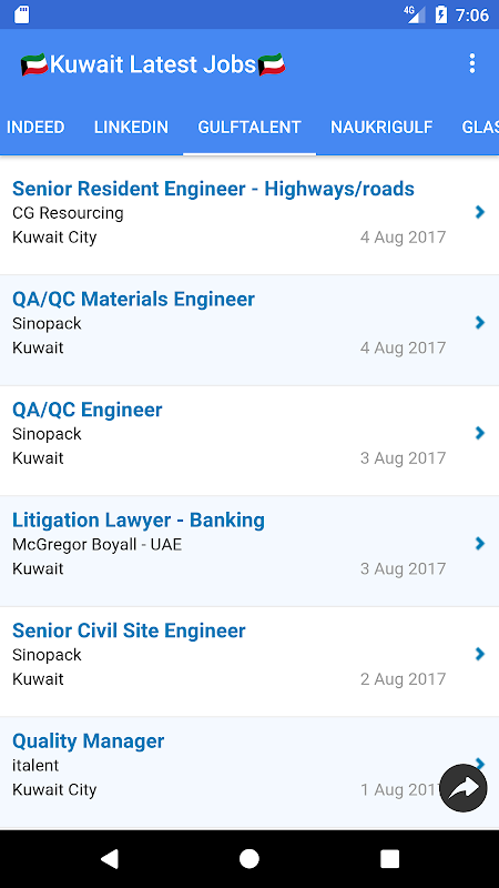 Whether you are a fresh graduate or an experienced professional, looking for full time jobs or part time jobs in Kuwait, this app will help you stay updated with the latest job opportunities in Kuwait’s market and from the top leading job sites, by making all the job offers and vacancies in Kuwait as easy as a swipe from your finger.