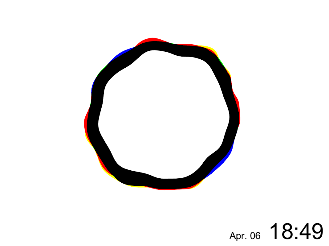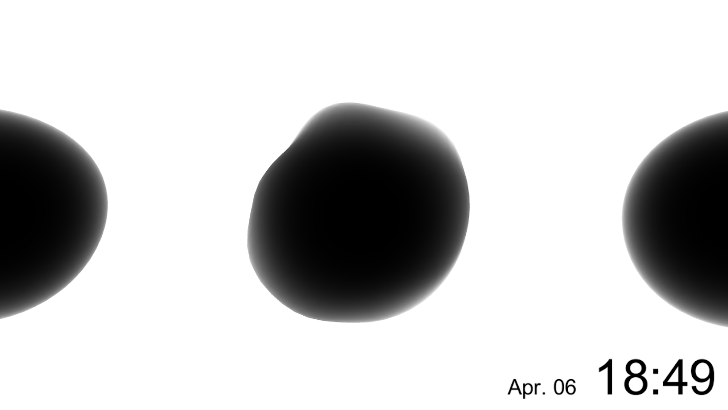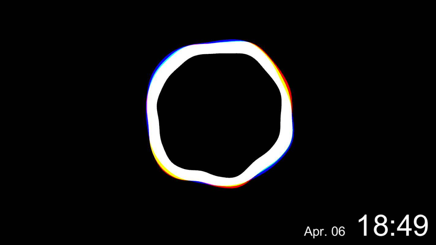 "1 / f Clock" là một ứng dụng đồng hồ.đồ họa chuyển động được tạo ra bởi sự biến động.