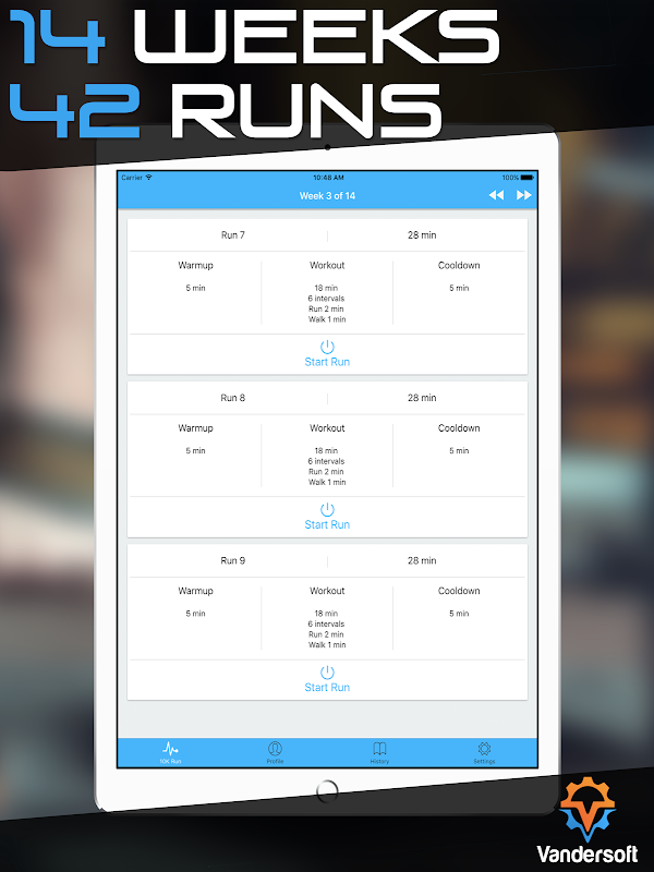 Trong 14 tuần tiếp theo chạy của bạn sẽ được cải thiện dần. Bạn sẽ bắt đầu với khoảng chạy bộ 1 phút ở giữa 1,5 phút đi bộ. Khi bạn hoàn thành chạy cơ thể của bạn sẽ được tăng cường và chương trình sẽ dần dần trở nên khó khăn hơn.