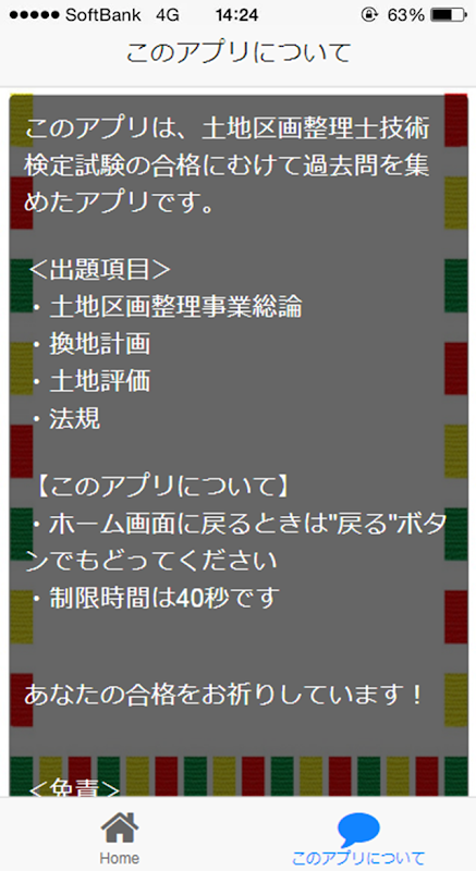 このアプリは、土地区画整理士技術検定試験の合格にむけて過去問を集めたアプリです。