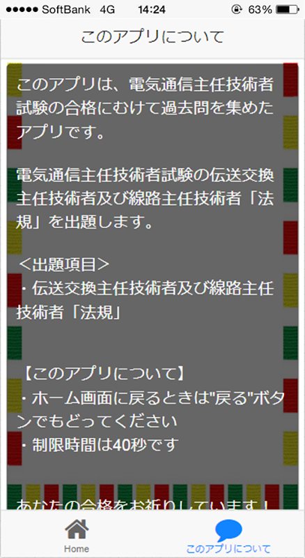 このアプリは、電気通信主任技術者試験の合格にむけて過去問を集めたアプリです。