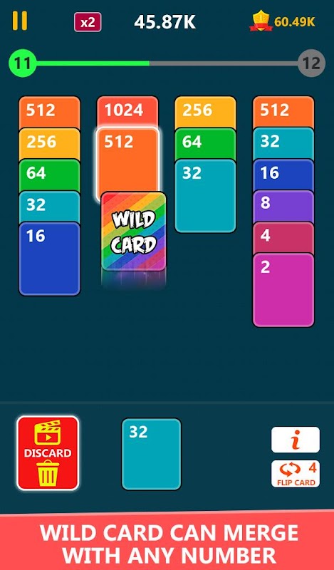 Giống như trong trò chơi 2048, mục tiêu của bạn là hợp nhất các lá bài để có được số 2048.