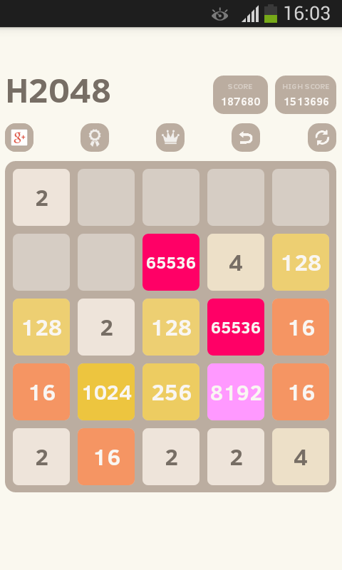 Phiên bản này chỉ là một sự thích nghi của "2048" của Gabriele Cirulli (https://github.com/gabrielecirulli/2048) và porting tương đối cho Android bằng cách Uberspot (https://github.com/uberspot/2048-android)