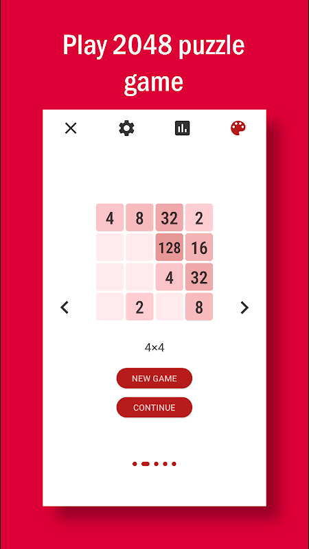 This app has 5 2048 variations or board sizes: