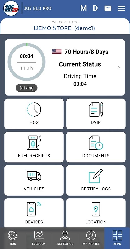 Ứng dụng tuân thủ FMCSA để ghi lại trạng thái nhiệm vụ của tài xế và đáp ứng các quy định sau: