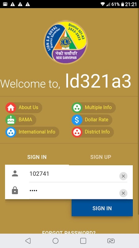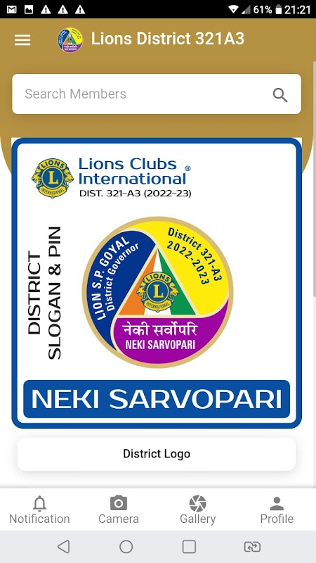 Lions Clubs International District 321A3 district directory app for use of lion members of district 321A3 and for other lions