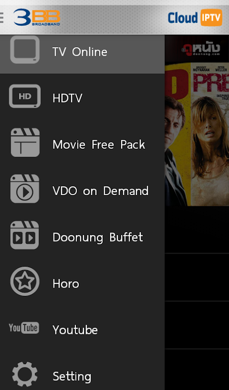 พิเศษสำหรับลูกค้า 3BB ดูทีวีออนไลน์แบบคมชัด พร้อมรับชมช่องคุณภาพมากมาย รวมถึงความบันเทิงต่างๆ เช่น คลิปวิดีโอ ภาพยนตร์ แบบพกพาซึ่งดูได้ทุกที่ทุกเวลาที่มีการเชื่อมต่อกับอินเตอร์เน็ต 3BB