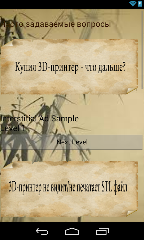 Готовность приложения не полное ..готов пока первый раздел"Часто задаваемые вопросы"