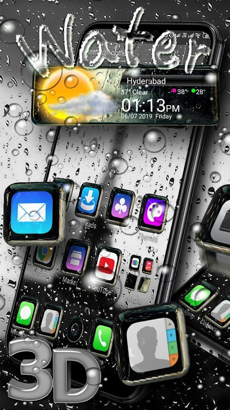 💦weather and search bar: - this feature always makes the phone fantastic. This is very important. You will be happy to know that every day you will have exquisite 3D glass tech weather to inform you climate. Get 3D clock and weather widgets to enjoy 3D theme at your fingertips.