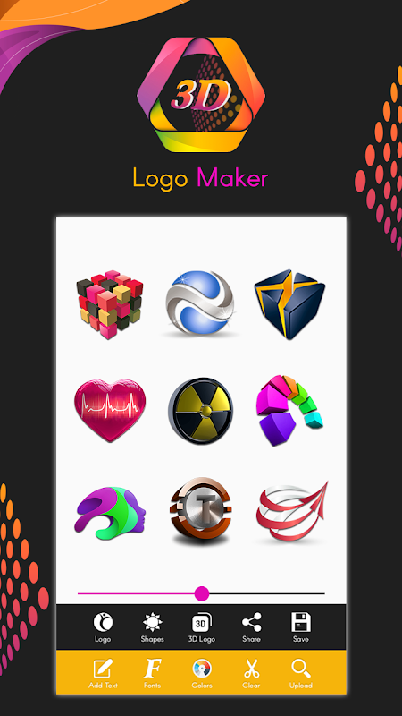 ♦ 3D Logo Maker Save Unlimited Logos Make unlimited logo designs and save them into your android.