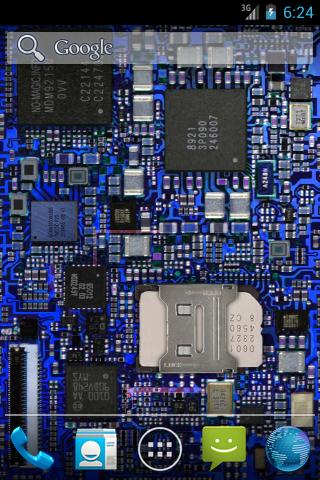 Amazing 3D live wallpaper showing the internal structure of your phone. To create a 3D effect is used the position of the device in space. Chips, trace elements and the connecting tracks are located on the electronic card. Electronic card and its elements reflect the light realistically. In pro version 5 colors of electronic cards and 5 colors of sparks are available. Sparks jump between elements of the board at random, and you can adjust their speed.